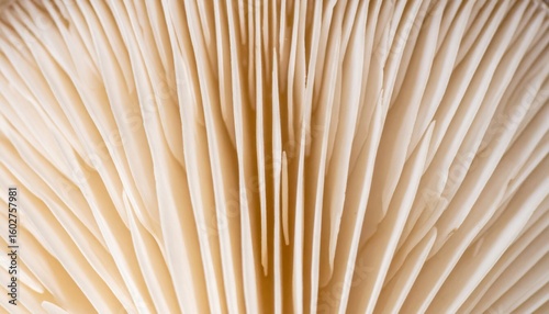 Extreme Close Up of Mushroom Gills Texture Pattern in Neutral Beige and White