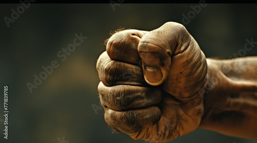 Extreme close-up of a martial artist's clenched fist, illustrating determination and focus in individual sports.