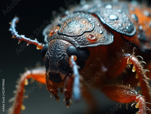 Extreme close-up of beetle showcasing intricate exoskeleton textures and reflections