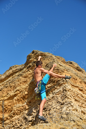 extreme man climbing up
