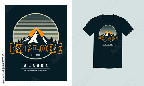 EXTREME Mountain Adventure. Explore ALASKA. Vintage Printed T-shirt for Latest Trend.