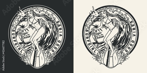Extreme surfing vintage round badge