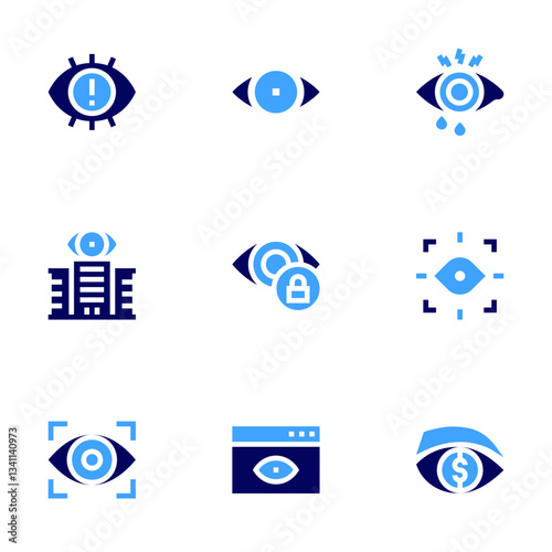 Eye icon set. Bold style. Duotone colors. eye, attention, eye clinic, vision, identification