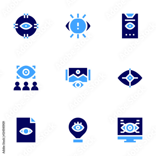 Eye icon set. Bold style. Duotone colors. objective, viewers, view, visualization, vision, identification, witness