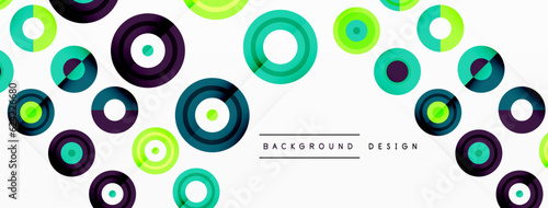 Eye-catching background of colorful circles of equal size arranged in abstract pattern. Circle boasts unique tone or hue, creating rainbow effect. Design has upbeat, contemporary feel