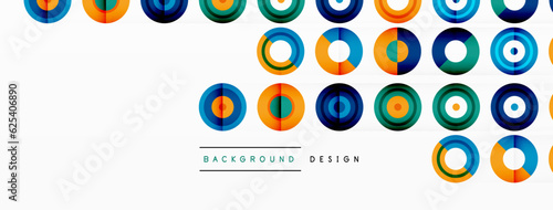 Eye-catching background of colorful circles of equal size arranged in abstract pattern. Circle boasts unique tone or hue, creating rainbow effect. Design has upbeat, contemporary feel