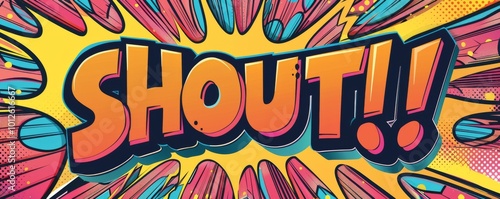 Eye-catching pop art background with "SHOUT!" inside. Comic book elements, Bold patterns, Colorful vector