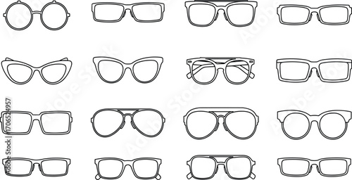 Eyeglass frame silhouettes vector illustration, various glasses shapes and styles icon set, optical eyewear design, fashion and vision accessory clipart