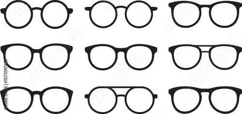 Eyeglasses Silhouette Icon Set – Black Vector Glasses and Frame Styles for Fashion and Vision Design