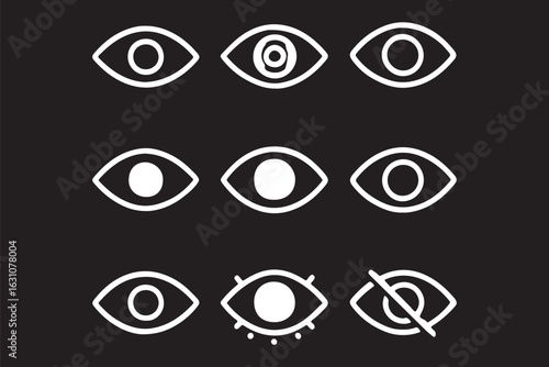 Eyes icon vector collection. Look and Vision icons.Show and hide visability icon set. Show password and hide password. Vector illustration eps