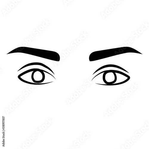 Eyes with eyebrows. Vector black and white isolated illustration. Fashion, beauty