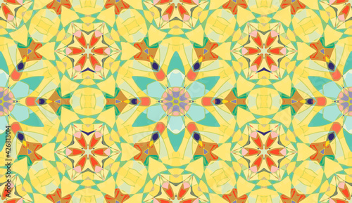 Fabric Seamless Pattern. Summer or Spring Mosaic Background.