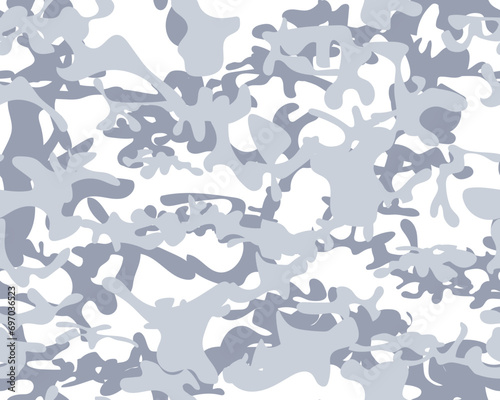 Fabric Woodland Background. Camo Snow Canvas. Repeat Blue Pattern. Winter Camouflage. Blue Seamless Paint. Gray Vector Pattern. White Camo Paint. Seamless Army Print. Abstract Vector Camoflage.
