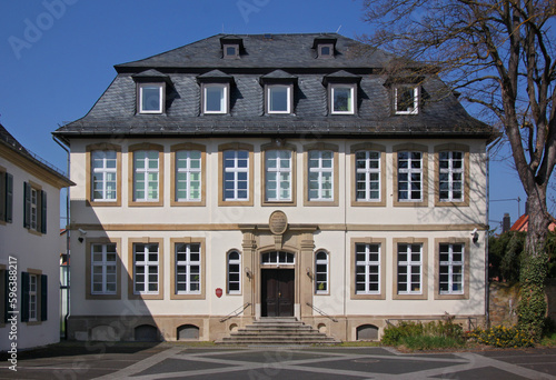 Facade of a former neo-baroque school building with mansard roof in the old town of Bad Sobernheim in Germany