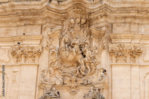 Facade of baroque Basilica of San Martino (Basilica di San Martino), located in Plebiscito Square, Martina Franca, Italy, Apulia