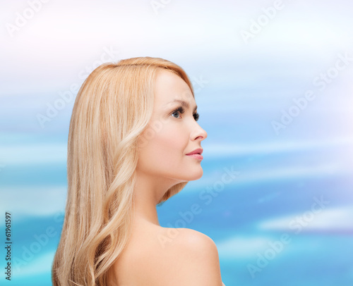 face and shouldes of happy woman with long hair