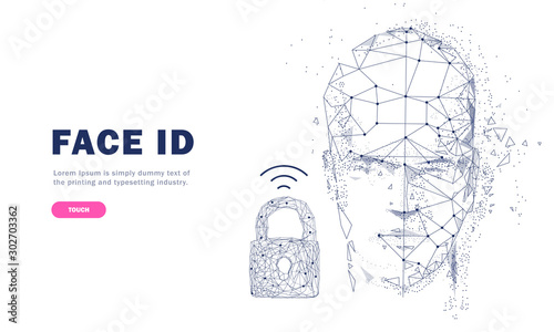 Face id technology. Trendy Innovations face systems. Innovations systems identifications and development computers software industry. Poligon personal encryption protection.