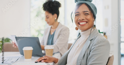 Face, leadership and woman in meeting in office ready for tasks, goals or targets. Ceo, boss and happy female entrepreneur with vision, mission and success mindset sitting with coworker in workplace.
