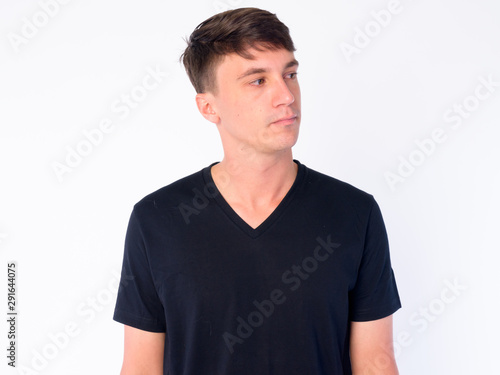 Face of young handsome man thinking and looking away