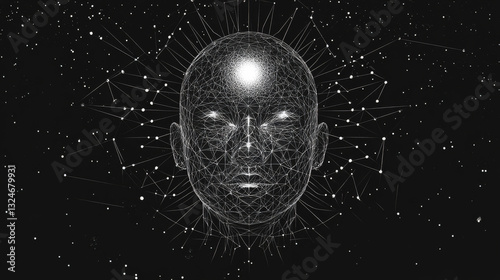 Face recognition low poly wireframe banner vector template. Futuristic computer technology, smart identification system poster polygonal design. Facial scan 3d mesh art with connected dots