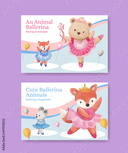Facebook template with Fairy ballerinas animals concept,watercolor style