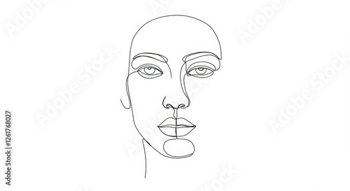 facial sketch, minimalist line drawing, human face, frontal view, symmetrical features, bald head, intense gaze, simple contours, black and white, artistic portrait, clean lines, unfinished sketch, fo