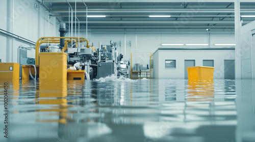 Factory Flood Disaster: Industrial Facility Submerged in Water