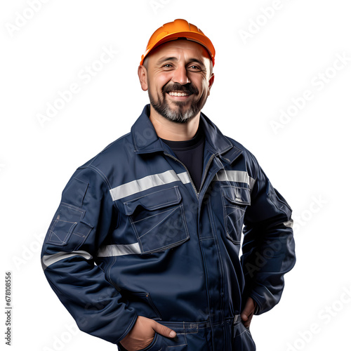 Factory worker in uniform on transparent background, white background, isolated, icon material, commercial photography