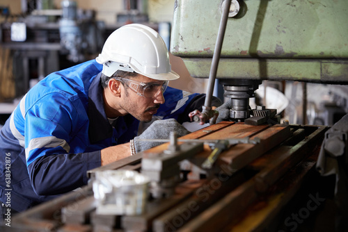 factory worker or technician checking and control lathe machine in factory