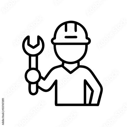 Factory worker with wrench, industrial labor icon