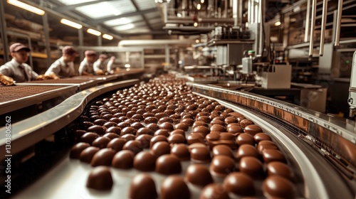 Factory Workers Produce Chocolate Candies on Conveyor Belt