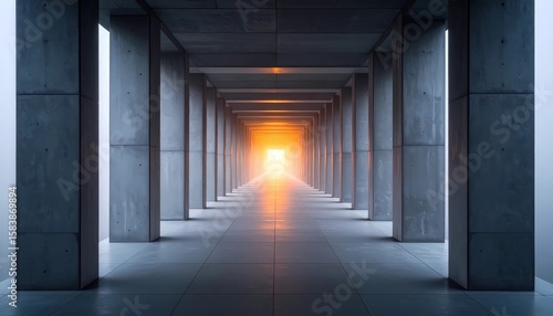 Fading Concrete Columns in Orange Mist