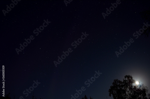 faint aurora borealis on blue full moon autumn night