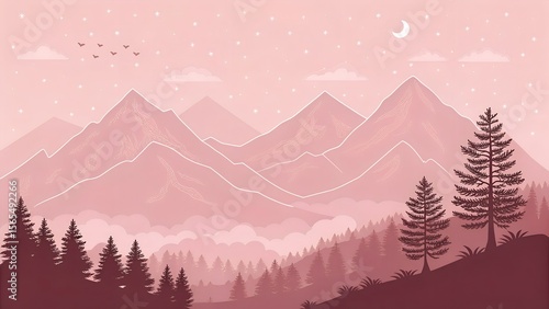 Faint Mountain Line On Dusty Pink Background, Simple Vector Style, Ai Generated