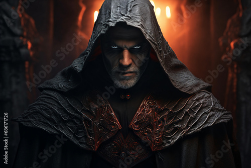 Fairytale sorcerer magician conducting rituals on halloween mysterious night generative ai
