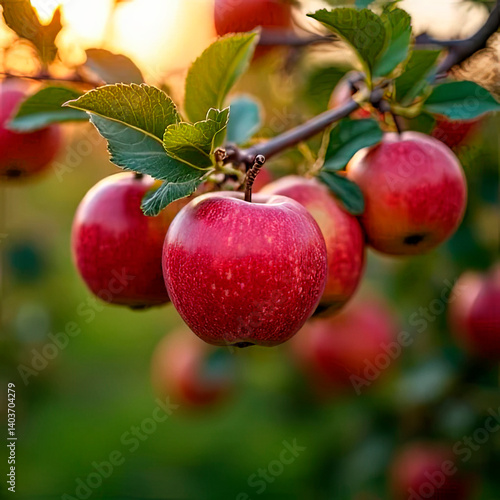 Fall apples on apple trees in evening light.created with the help of artificial intelligence.