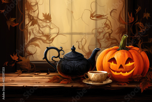 Fall Autumn Halloween Pumpkin Aesthetic Background Banner Wallpaper Invitation | Generative Ai