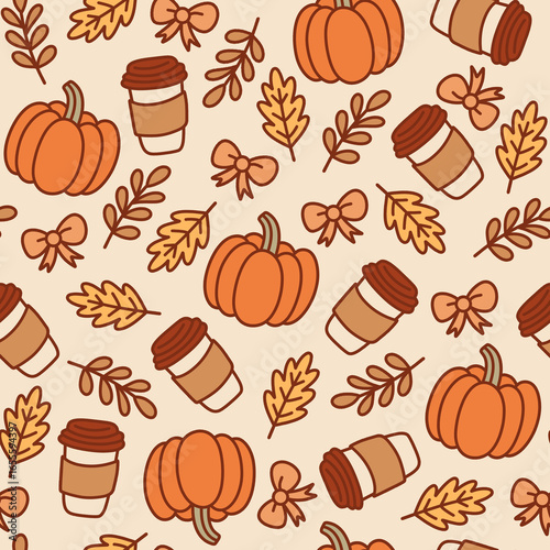 Fall Coffee Pumpkin Seamless Pattern, Fall Coffee Pumpkin Background, Fall Digital Paper, Fall Wallpaper