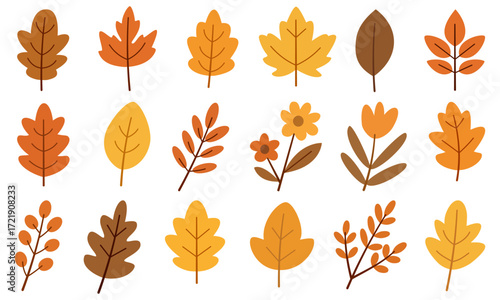 Fall Foliage Clipart Collection – Leaves, Branches and Flowers Minimal Vector Pack