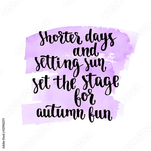 Fall handwritten brush calligraphy and autumn motives. Lettering and hand painted watercolor spot background.