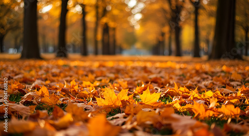 Fall Leaves in Park – Orange Autumn Forest Background