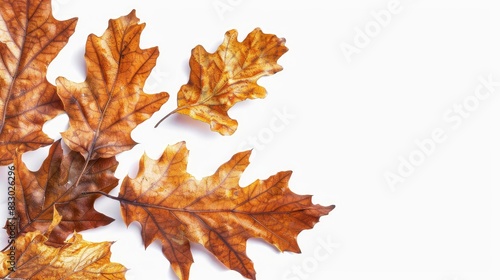Fall Season White background with isolated dried oak leaves