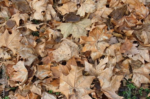 Fallen dry leaves of plane tree