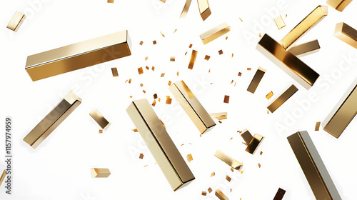 Falling and scattered gold bars on white background. Auriferous. Illustration