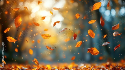 Falling Autumn Leaves in a Forest