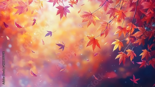 Falling autumn leaves in warm hues, bokeh background. Perfect for fall themes, nature blogs, and seasonal designs.