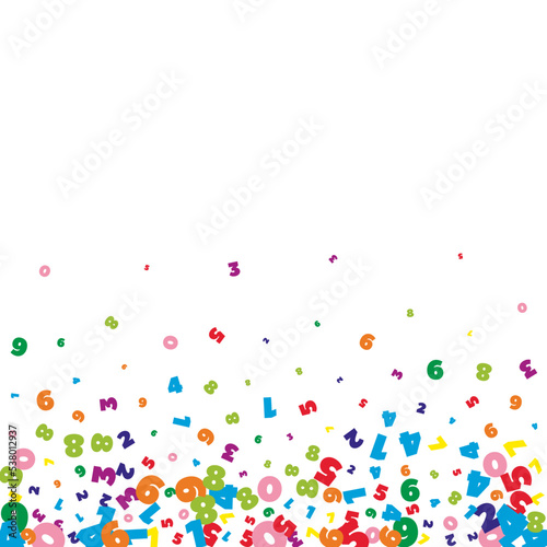 Falling bright numbers. Math study concept with flying digits. Rare back to school mathematics banner on white background. Falling numbers vector illustration.