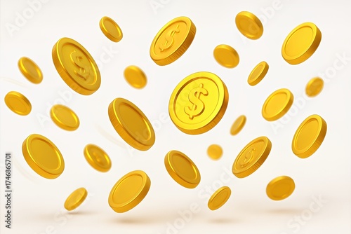 Falling Gold Coins with Dollar Sign on a Light Background for Financial Concepts and Themes