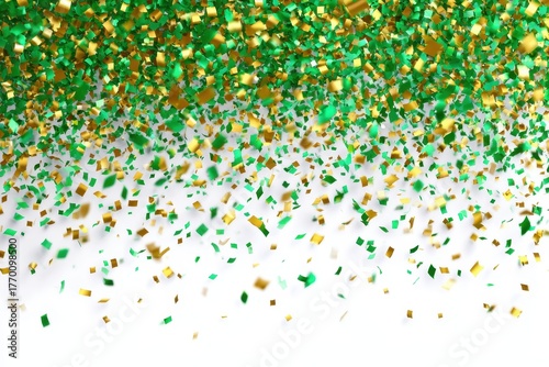 Falling green and gold confetti on a white background. Perfect for St. Patrick's Day, party, or celebration designs.