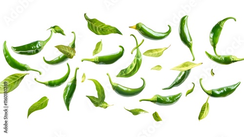 Falling Green Chilli isolated on a white background